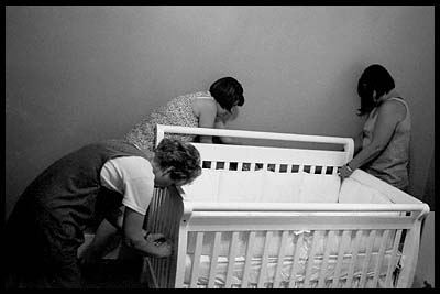 - Tanya and her mother Jeri (left) and my mother Pat set up the